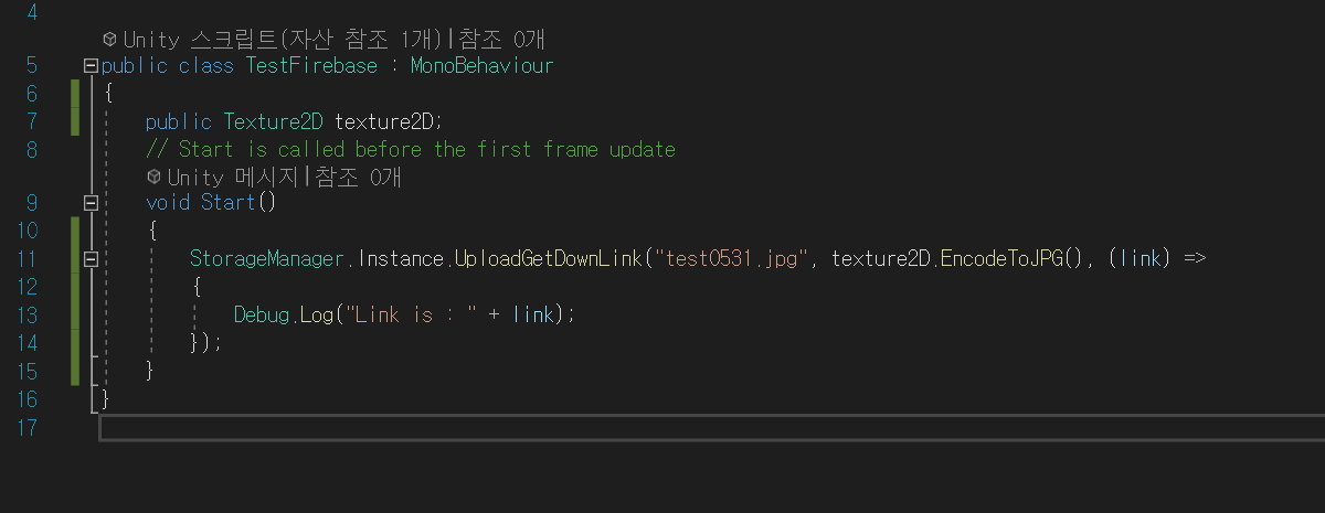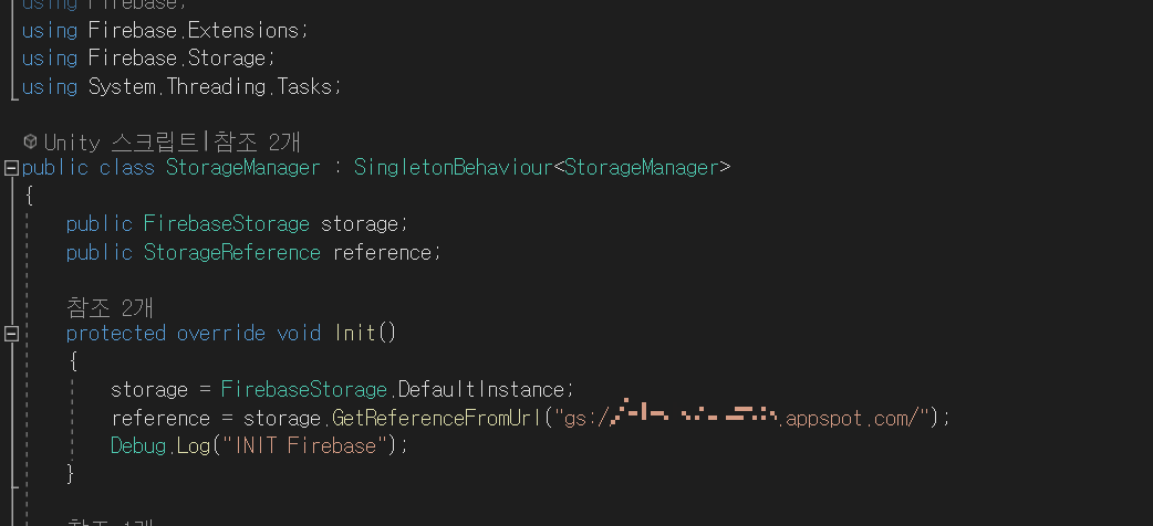 reference 변수에 GetReferenceFromUri();에 복사했던 주소를 입력하여 레퍼런스를 할당해줍니다