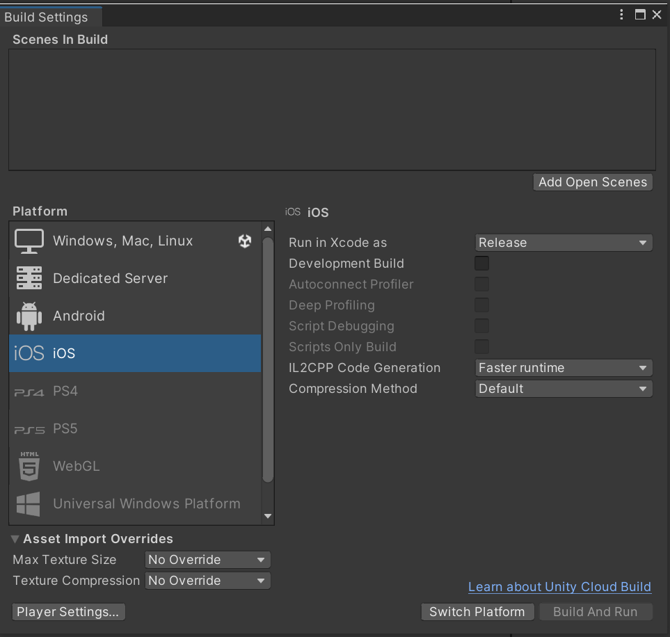 윈도우만 쓰더라도 상관없이 유니티에서 ios 모듈을 추가해줘야합니다.