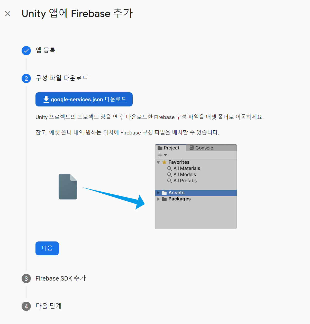 google-services.json를 firebase에서 받아서 유니티에 넣어줍니다.