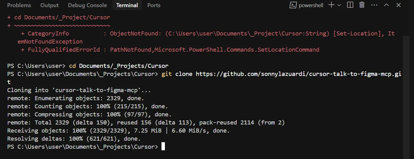 cursor-talk-to-figma-mcp가 클론된 위치에서 bun setup으로 mcp 설치를 진행