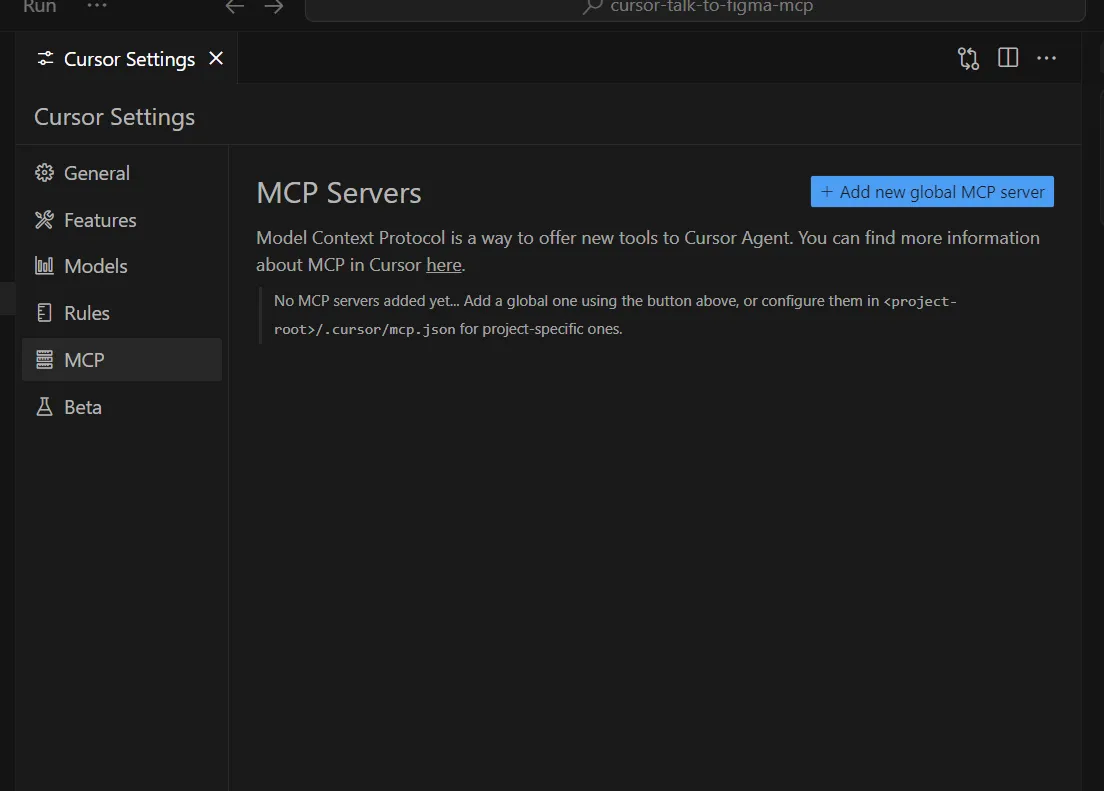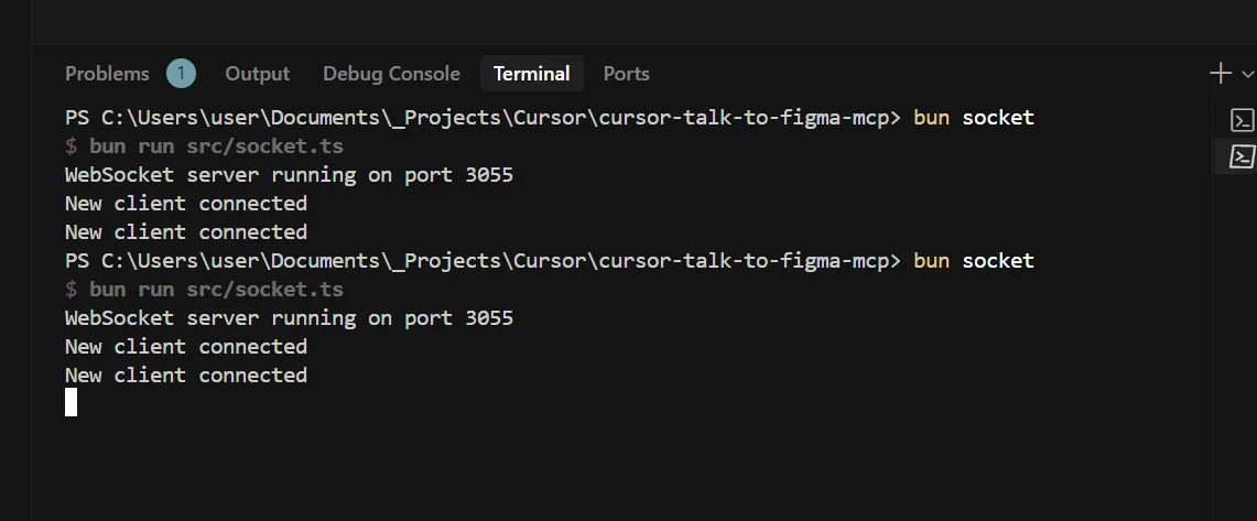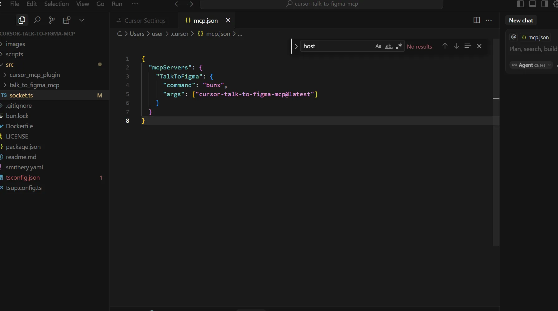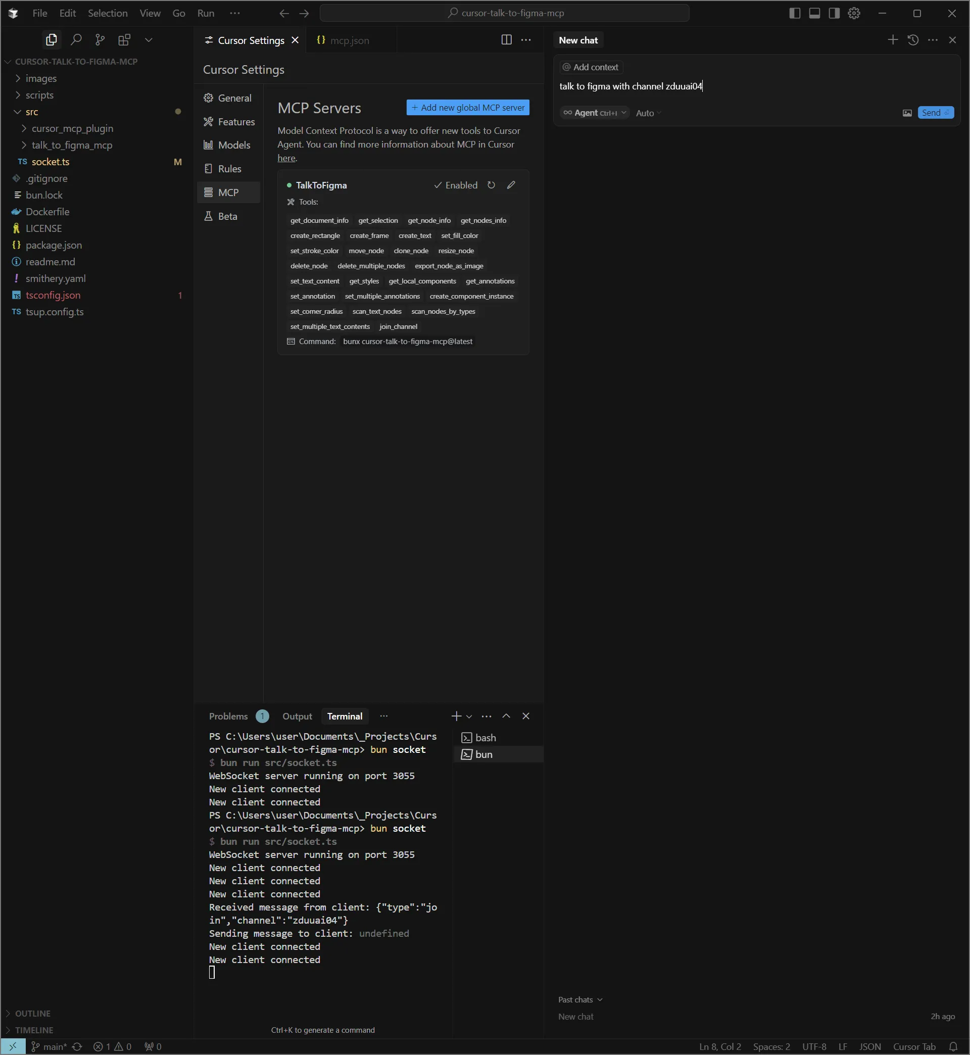 cursor-talk-to-figma-mcp 를 입력하여 새 창을 열기