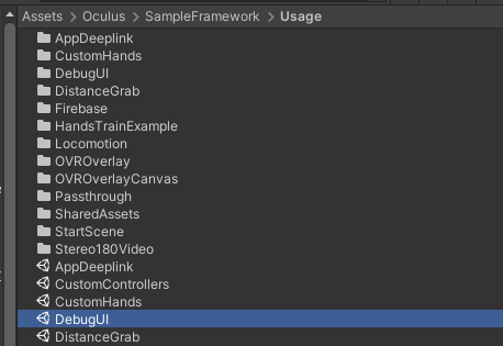 오큘러스 sdk를 받으면 하위폴더에 샘플들이 있는데 그중에 debugUI 씬을 열어보면 오큘러스 컨트롤러로 ui와 인터랙션되는 씬임을 확인할수있다