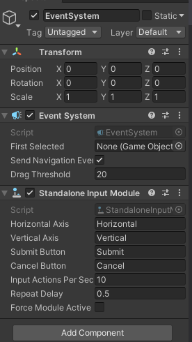 event system의 컴포넌트를 살펴보면 input module이 있는데 말그대로 input 값을 ui 이벤트랑 연결하는 모듈입니다.